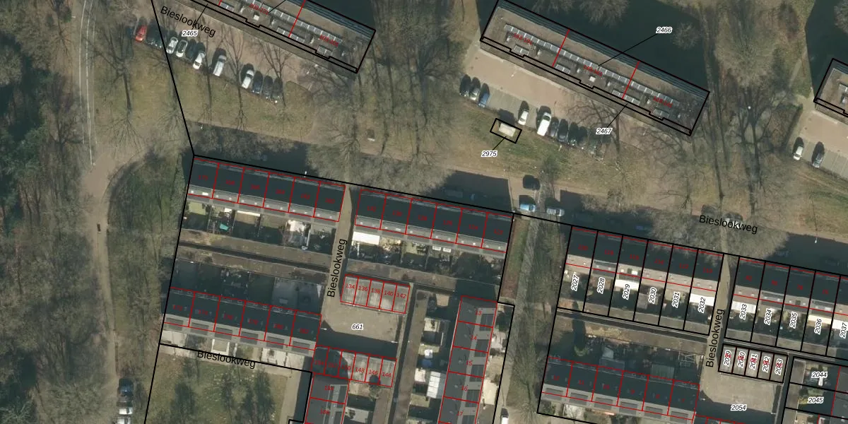 Het perceel waarop Bieslookweg 128 staat heeft een oppervlakte van 5255 m². Dit is een zeer groot perceel. De perceeloppervlakte wordt geregistreerd door het Kadaster. Gedetailleerde informatie over de maten van dit perceel kunt u vinden in het rapport Kadastrale kaart met maatvoering van Bieslookweg 128.