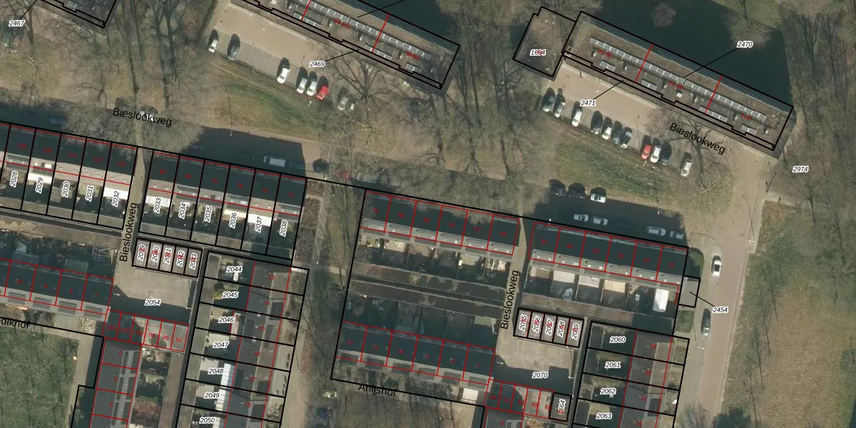 Bieslookweg 66 is gelegen op kadastraal perceel TBG01AD2070. Deze kadastrale aanduiding is uniek en wordt gebruikt door het Kadaster om eigendomsrechten en andere zakelijke rechten vast te leggen. Het perceel maakt onderdeel uit van de kadastrale gemeente Tilburg.