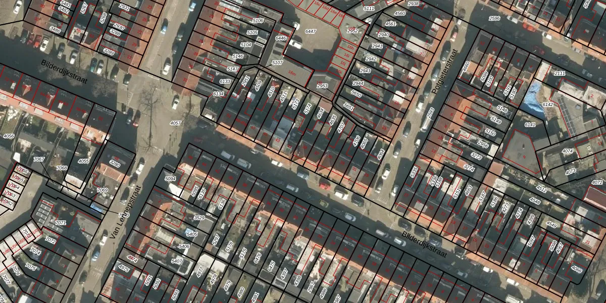 Het perceel waarop Bilderdijkstraat 39 staat heeft een oppervlakte van 108 m². Dit is een middelgroot perceel. De perceeloppervlakte wordt geregistreerd door het Kadaster. Gedetailleerde informatie over de maten van dit perceel kunt u vinden in het rapport Kadastrale kaart met maatvoering van Bilderdijkstraat 39.