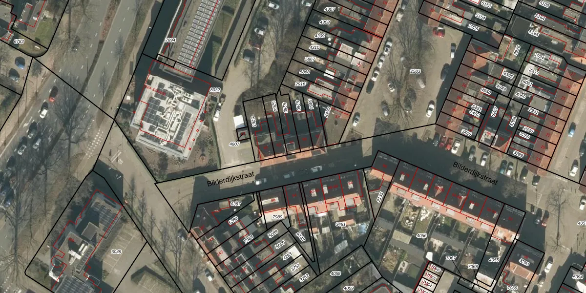 Gebruik de zoekbalk of klik op een perceel voor informatie over de adressen binnen dit perceel.
