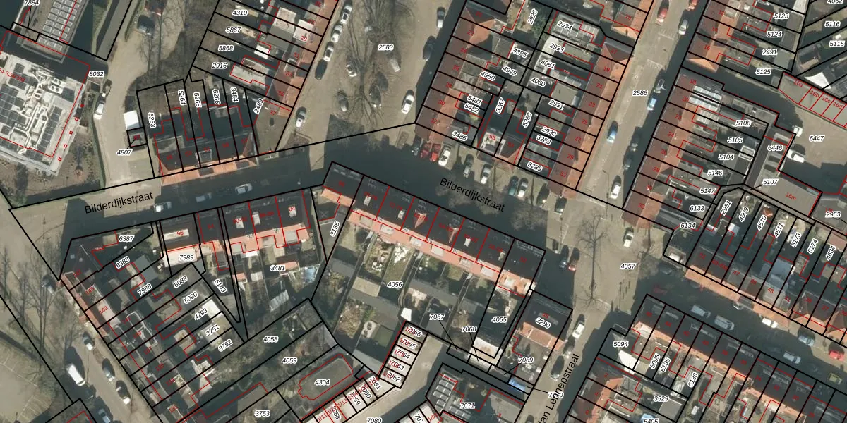 Het perceel waarop Bilderdijkstraat 68 staat heeft een oppervlakte van 1364 m². Dit is een zeer groot perceel. De perceeloppervlakte wordt geregistreerd door het Kadaster. Gedetailleerde informatie over de maten van dit perceel kunt u vinden in het rapport Kadastrale kaart met maatvoering van Bilderdijkstraat 68.