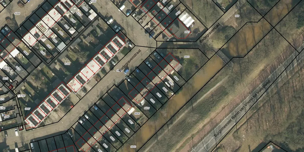 Bodegravenstraat 48 is gelegen op kadastraal perceel TBG01AF6406. Deze kadastrale aanduiding is uniek en wordt gebruikt door het Kadaster om eigendomsrechten en andere zakelijke rechten vast te leggen. Het perceel maakt onderdeel uit van de kadastrale gemeente Tilburg.