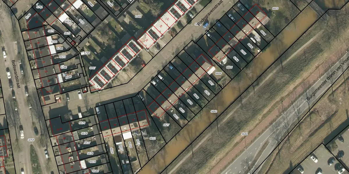 Het perceel waarop Bodegravenstraat 64 staat heeft een oppervlakte van 174 m². Dit is een middelgroot perceel. De perceeloppervlakte wordt geregistreerd door het Kadaster. Gedetailleerde informatie over de maten van dit perceel kunt u vinden in het rapport Kadastrale kaart met maatvoering van Bodegravenstraat 64.