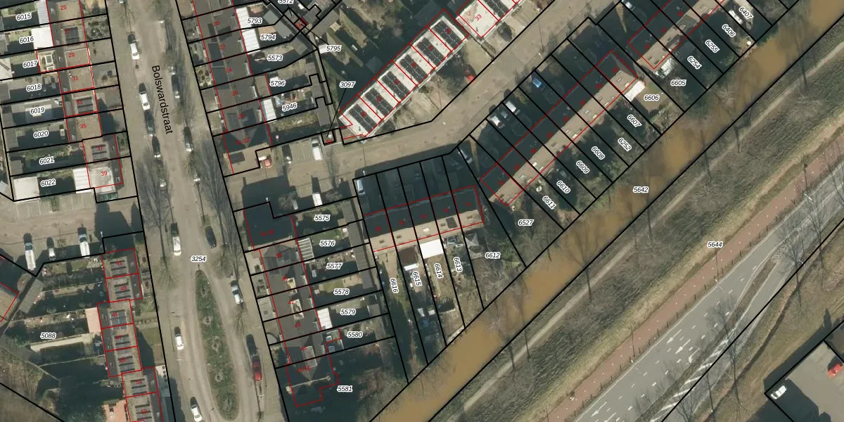 Gebruik de zoekbalk of klik op een perceel voor informatie over de adressen binnen dit perceel.