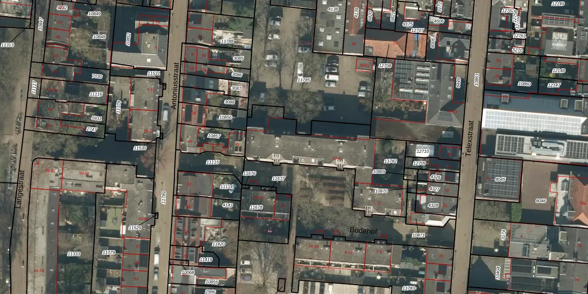 Het perceel waarop Bodehof 35 staat heeft een oppervlakte van 1065 m². Dit is een zeer groot perceel. De perceeloppervlakte wordt geregistreerd door het Kadaster. Gedetailleerde informatie over de maten van dit perceel kunt u vinden in het rapport Kadastrale kaart met maatvoering van Bodehof 35.