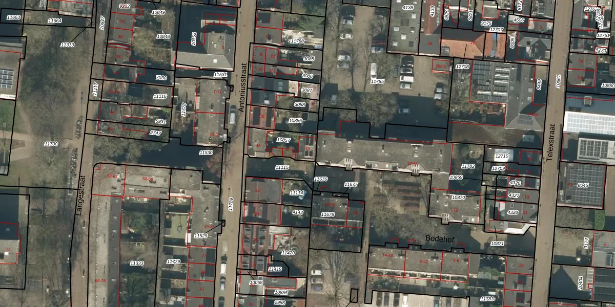 Het perceel waarop Bodehof 43 staat heeft een oppervlakte van 211 m². Dit is een middelgroot perceel. De perceeloppervlakte wordt geregistreerd door het Kadaster. Gedetailleerde informatie over de maten van dit perceel kunt u vinden in het rapport Kadastrale kaart met maatvoering van Bodehof 43.