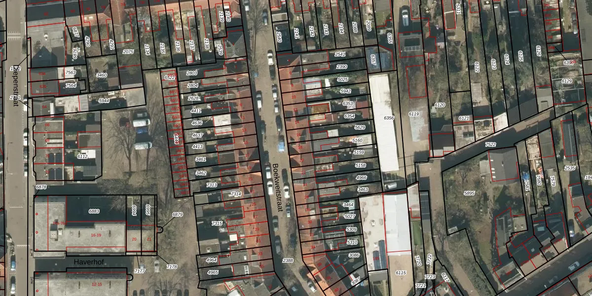 Boekweitstraat 18 is gelegen op kadastraal perceel TBG01Q5160. Deze kadastrale aanduiding is uniek en wordt gebruikt door het Kadaster om eigendomsrechten en andere zakelijke rechten vast te leggen. Het perceel maakt onderdeel uit van de kadastrale gemeente Tilburg.
