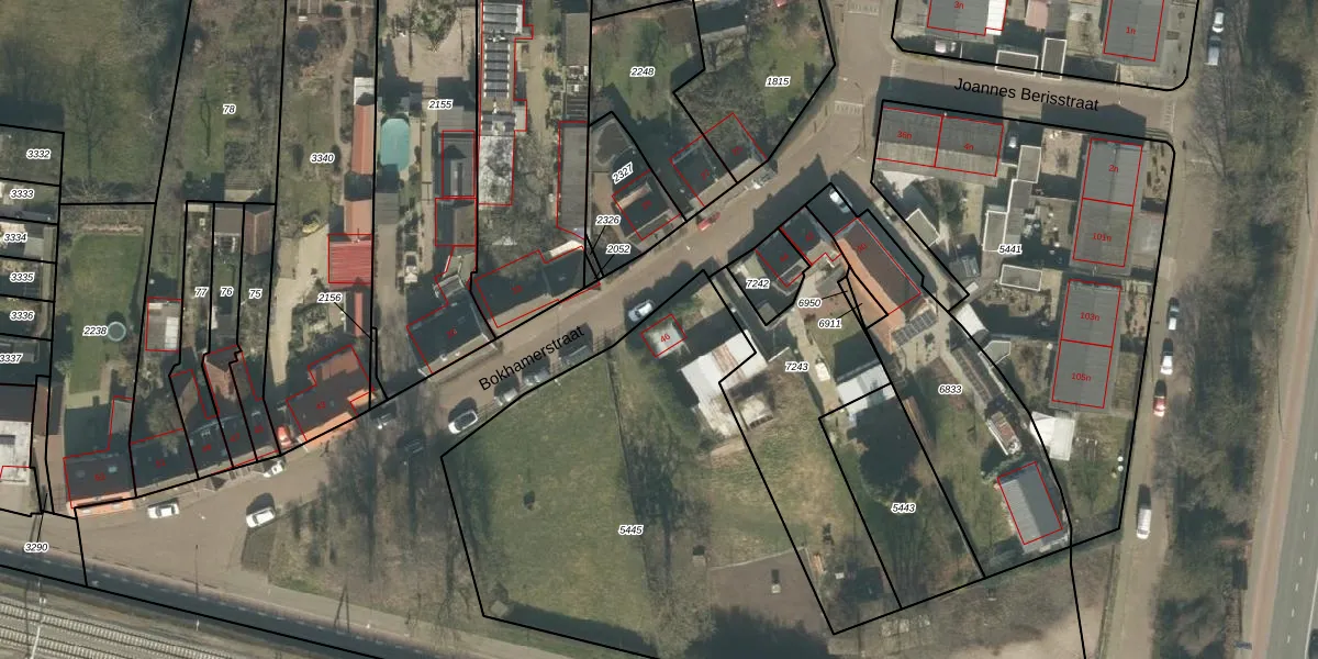 Het perceel waarop Bokhamerstraat 46 staat heeft een oppervlakte van 3052 m². Dit is een zeer groot perceel. De perceeloppervlakte wordt geregistreerd door het Kadaster. Gedetailleerde informatie over de maten van dit perceel kunt u vinden in het rapport Kadastrale kaart met maatvoering van Bokhamerstraat 46.