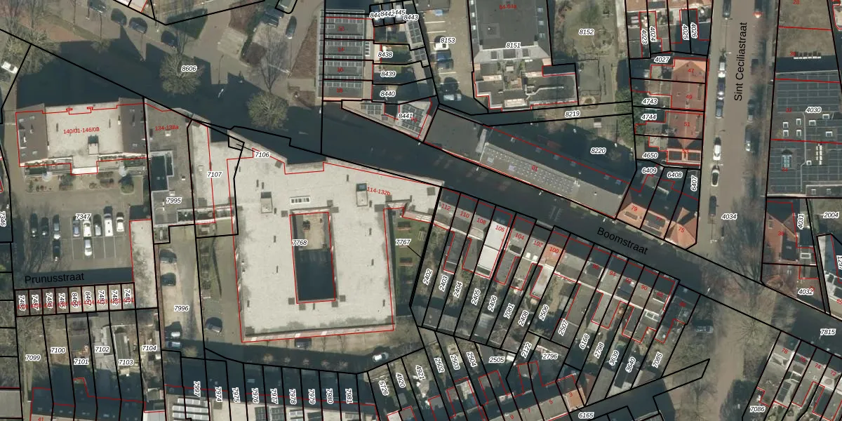 Boomstraat 114-b is gelegen op kadastraal perceel TBG01P7768. Deze kadastrale aanduiding is uniek en wordt gebruikt door het Kadaster om eigendomsrechten en andere zakelijke rechten vast te leggen. Het perceel maakt onderdeel uit van de kadastrale gemeente Tilburg.