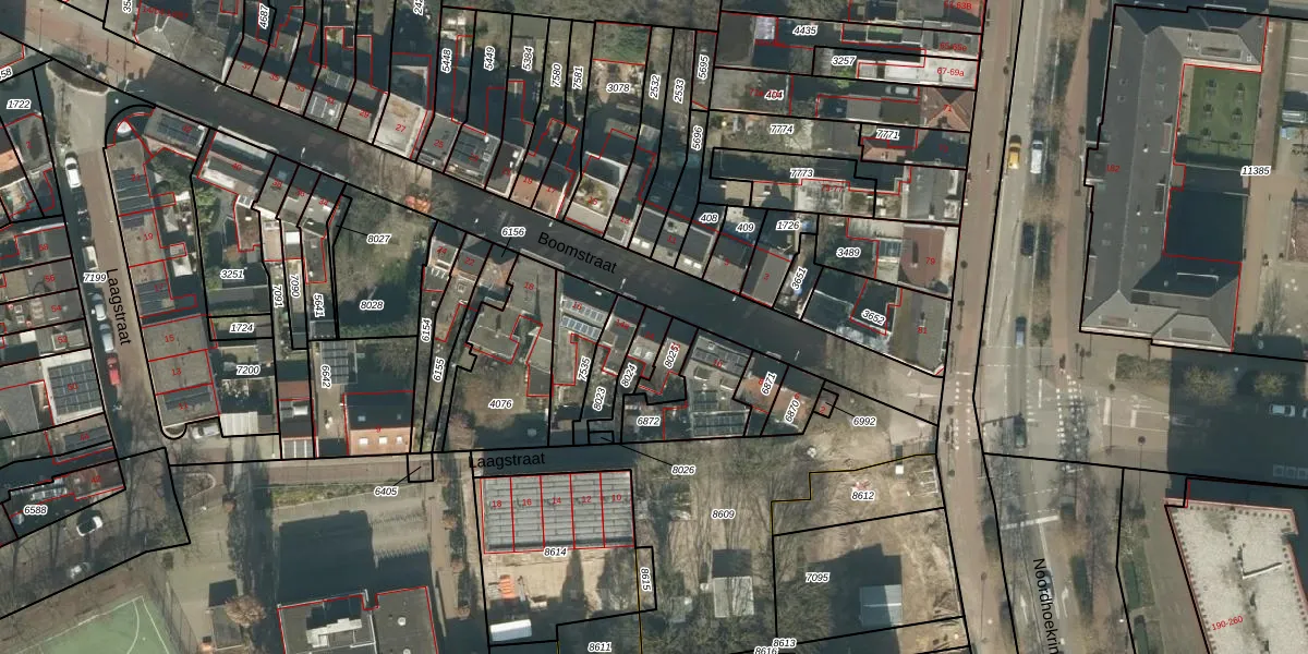 Het perceel waarop Boomstraat 14 staat heeft een oppervlakte van 76 m². Dit is een klein perceel. De perceeloppervlakte wordt geregistreerd door het Kadaster. Gedetailleerde informatie over de maten van dit perceel kunt u vinden in het rapport Kadastrale kaart met maatvoering van Boomstraat 14.