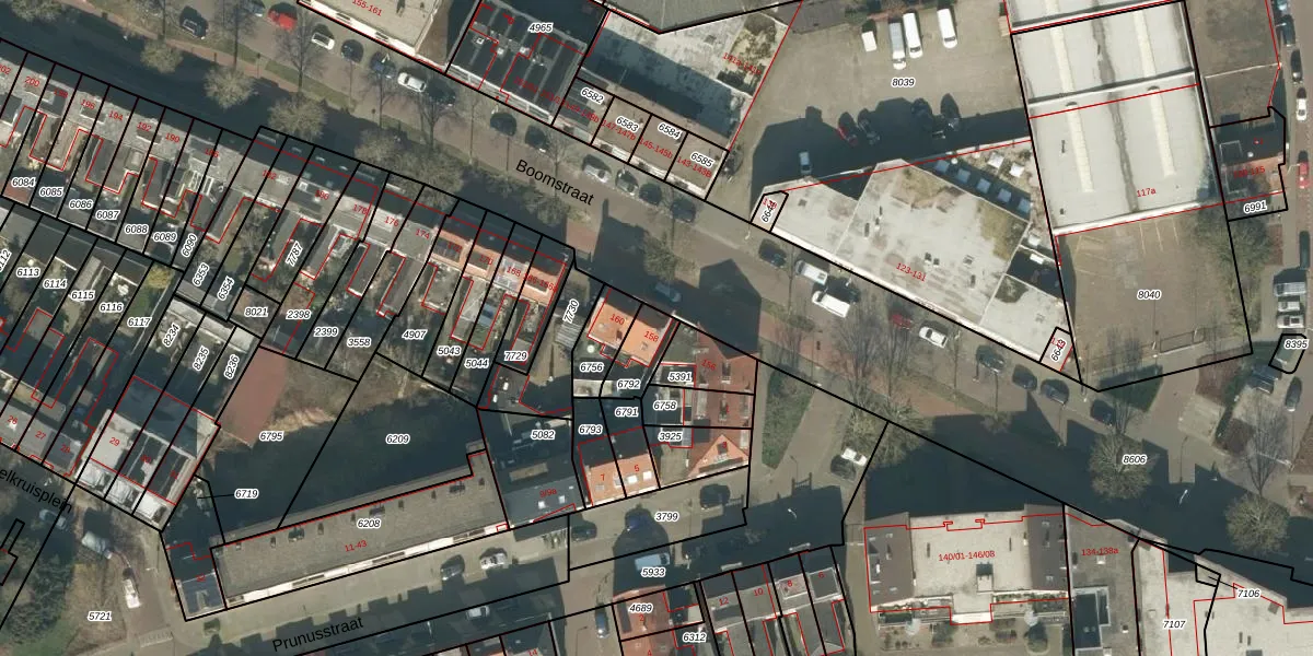 Het perceel waarop Boomstraat 158 staat heeft een oppervlakte van 92 m². Dit is een klein perceel. De perceeloppervlakte wordt geregistreerd door het Kadaster. Gedetailleerde informatie over de maten van dit perceel kunt u vinden in het rapport Kadastrale kaart met maatvoering van Boomstraat 158.
