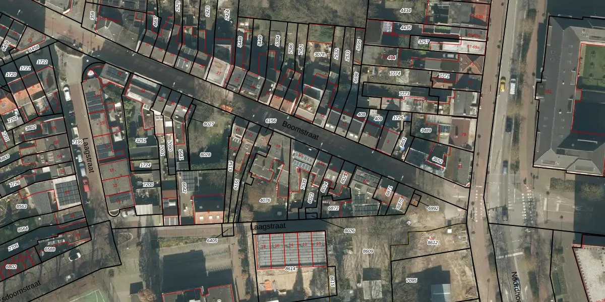 Boomstraat 16 is gelegen op kadastraal perceel TBG01P7535. Deze kadastrale aanduiding is uniek en wordt gebruikt door het Kadaster om eigendomsrechten en andere zakelijke rechten vast te leggen. Het perceel maakt onderdeel uit van de kadastrale gemeente Tilburg.