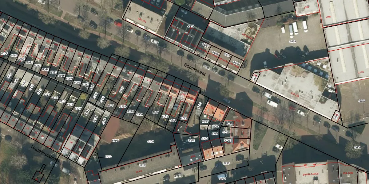 Boomstraat 168 is gelegen op kadastraal perceel TBG01P5044. Deze kadastrale aanduiding is uniek en wordt gebruikt door het Kadaster om eigendomsrechten en andere zakelijke rechten vast te leggen. Het perceel maakt onderdeel uit van de kadastrale gemeente Tilburg.