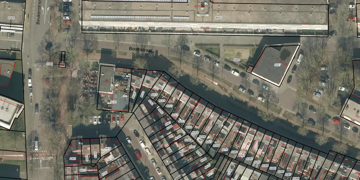 Het perceel waarop Boomstraat 224 staat heeft een oppervlakte van 89 m². Dit is een klein perceel. De perceeloppervlakte wordt geregistreerd door het Kadaster. Gedetailleerde informatie over de maten van dit perceel kunt u vinden in het rapport Kadastrale kaart met maatvoering van Boomstraat 224.