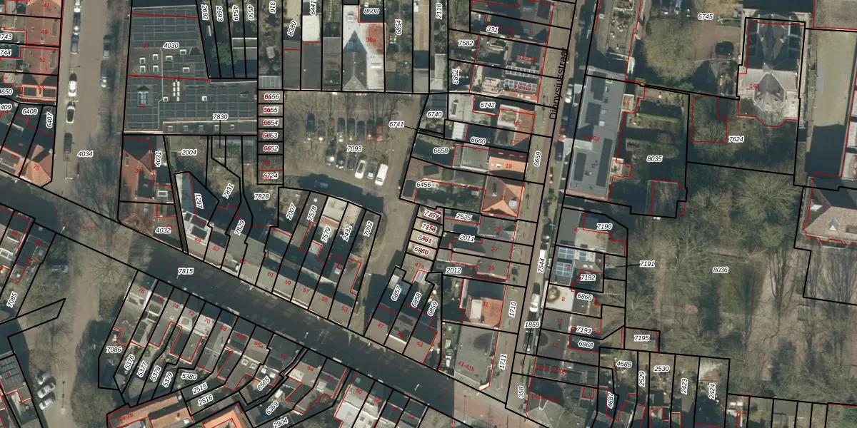 Gebruik de zoekbalk of klik op een perceel voor informatie over de adressen binnen dit perceel.