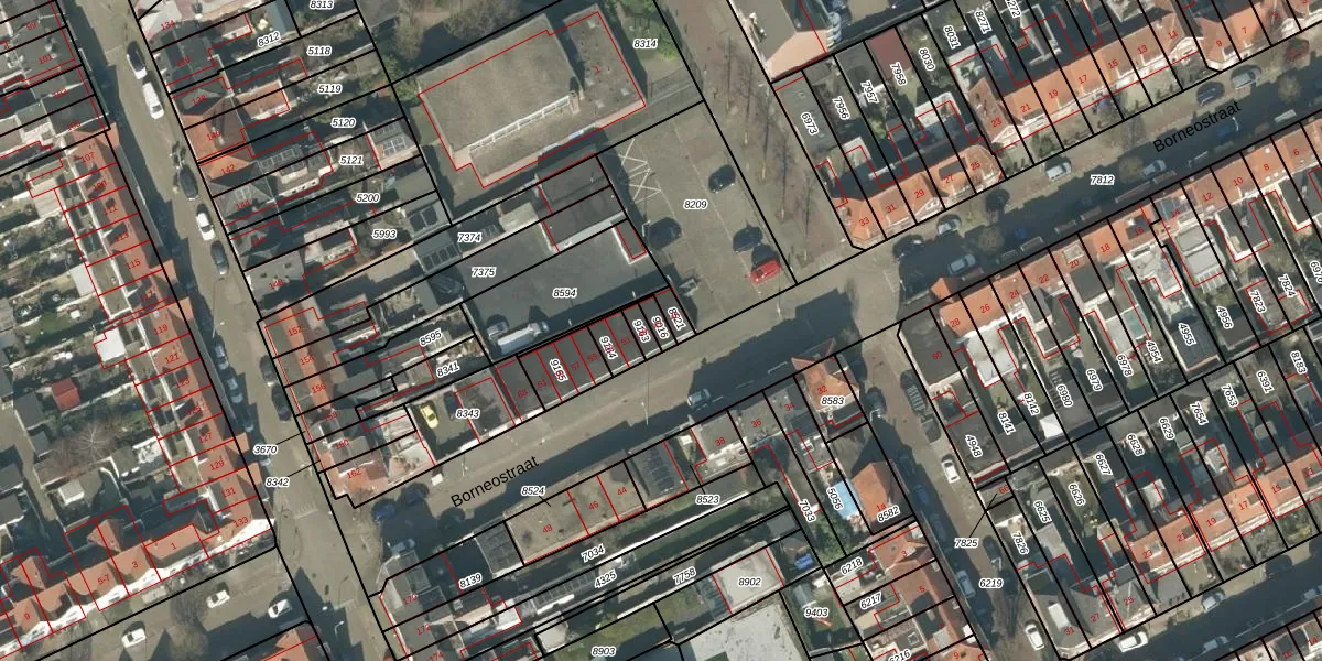 Borneostraat 47 is gelegen op kadastraal perceel TBG01B9016. Deze kadastrale aanduiding is uniek en wordt gebruikt door het Kadaster om eigendomsrechten en andere zakelijke rechten vast te leggen. Het perceel maakt onderdeel uit van de kadastrale gemeente Tilburg.