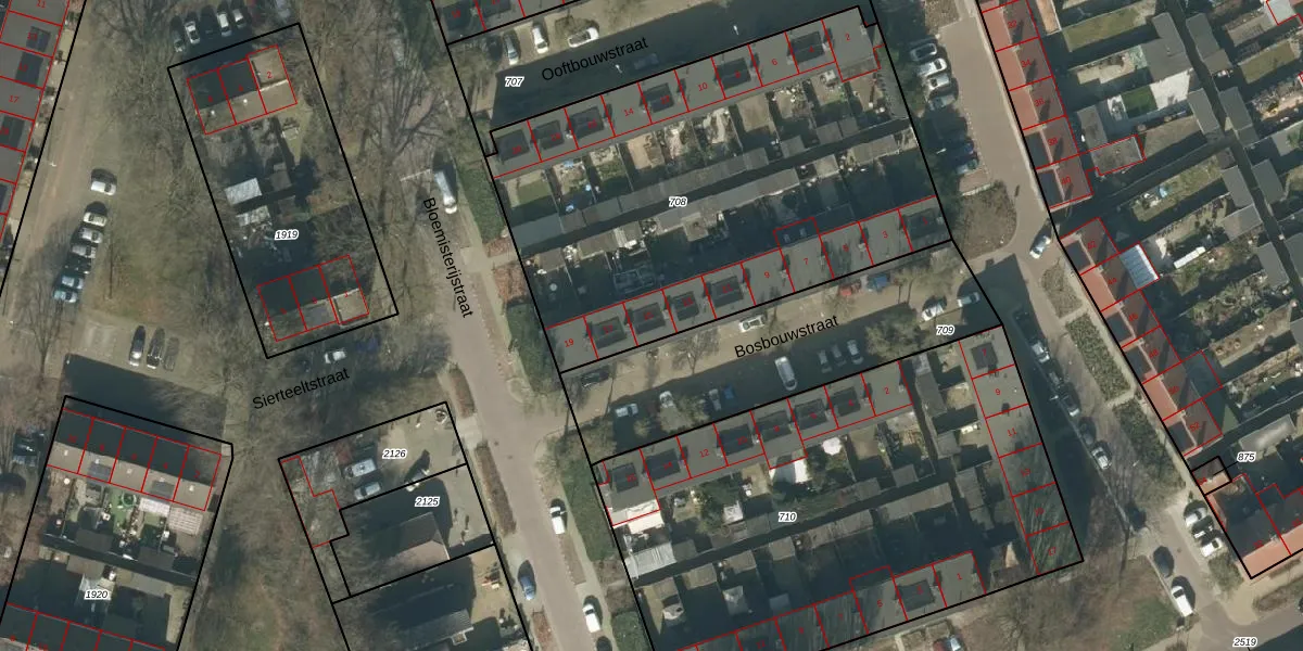 Het perceel waarop Bosbouwstraat 15 staat heeft een oppervlakte van 2447 m². Dit is een zeer groot perceel. De perceeloppervlakte wordt geregistreerd door het Kadaster. Gedetailleerde informatie over de maten van dit perceel kunt u vinden in het rapport Kadastrale kaart met maatvoering van Bosbouwstraat 15.