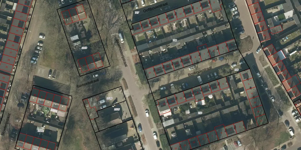 Het perceel waarop Bosbouwstraat 19 staat heeft een oppervlakte van 2447 m². Dit is een zeer groot perceel. De perceeloppervlakte wordt geregistreerd door het Kadaster. Gedetailleerde informatie over de maten van dit perceel kunt u vinden in het rapport Kadastrale kaart met maatvoering van Bosbouwstraat 19.