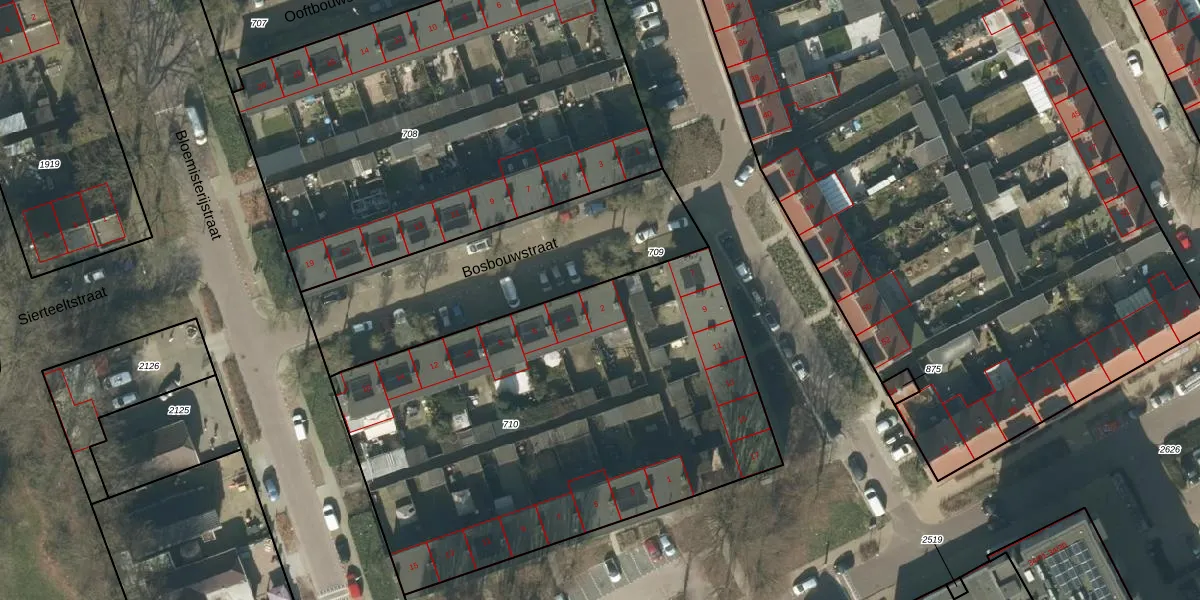 Het perceel waarop Bosbouwstraat 2 staat heeft een oppervlakte van 2567 m². Dit is een zeer groot perceel. De perceeloppervlakte wordt geregistreerd door het Kadaster. Gedetailleerde informatie over de maten van dit perceel kunt u vinden in het rapport Kadastrale kaart met maatvoering van Bosbouwstraat 2.