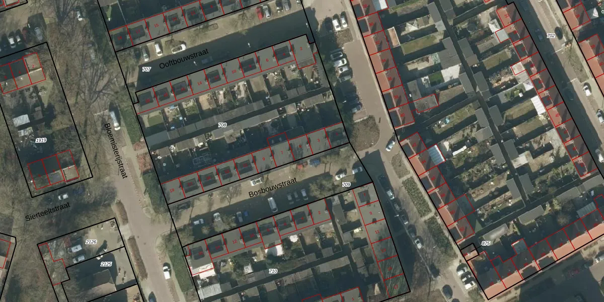 Het perceel waarop Bosbouwstraat 5 staat heeft een oppervlakte van 2447 m². Dit is een zeer groot perceel. De perceeloppervlakte wordt geregistreerd door het Kadaster. Gedetailleerde informatie over de maten van dit perceel kunt u vinden in het rapport Kadastrale kaart met maatvoering van Bosbouwstraat 5.