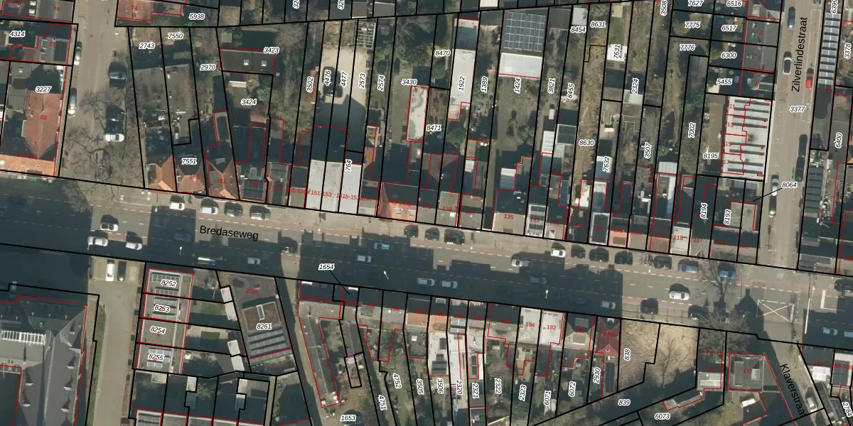 Bredaseweg 141 is gelegen op kadastraal perceel TBG01P8471. Deze kadastrale aanduiding is uniek en wordt gebruikt door het Kadaster om eigendomsrechten en andere zakelijke rechten vast te leggen. Het perceel maakt onderdeel uit van de kadastrale gemeente Tilburg.
