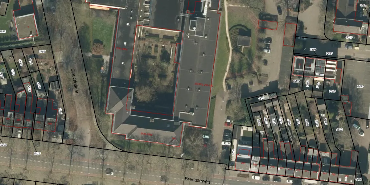 Het perceel waarop Bredaseweg 291-115 staat heeft een oppervlakte van 3,0 ha. Dit is een zeer groot perceel. De perceeloppervlakte wordt geregistreerd door het Kadaster. Gedetailleerde informatie over de maten van dit perceel kunt u vinden in het rapport Kadastrale kaart met maatvoering van Bredaseweg 291-115.