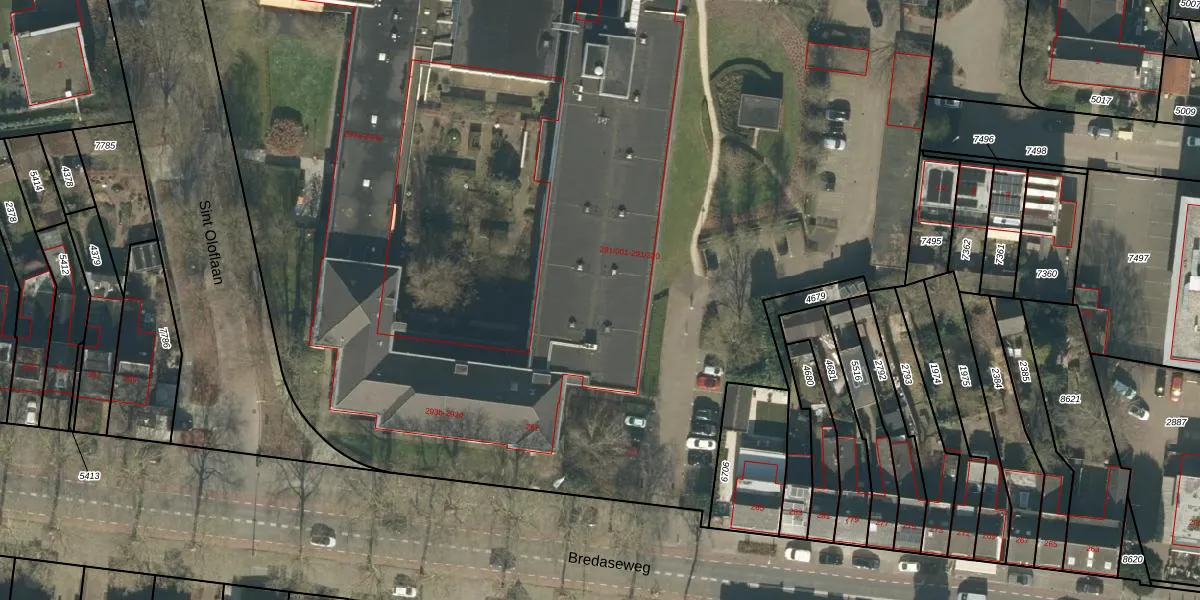 Bredaseweg 291-316 is gelegen op kadastraal perceel TBG01P7553. Deze kadastrale aanduiding is uniek en wordt gebruikt door het Kadaster om eigendomsrechten en andere zakelijke rechten vast te leggen. Het perceel maakt onderdeel uit van de kadastrale gemeente Tilburg.