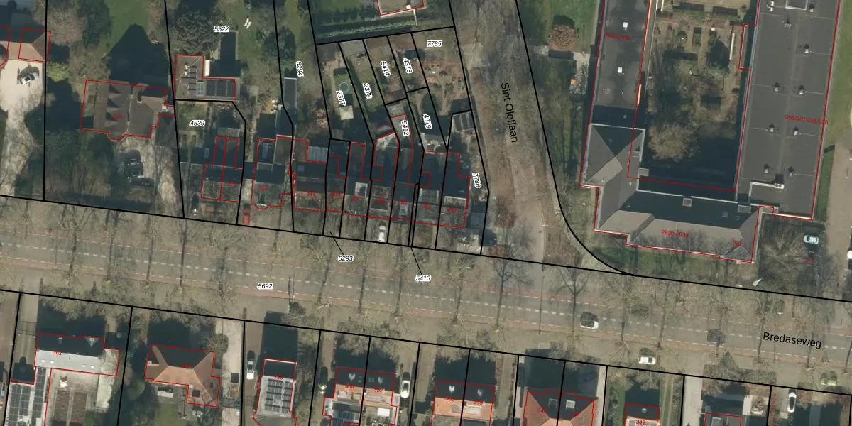 Bredaseweg 301 is gelegen op kadastraal perceel TBG01P4379. Deze kadastrale aanduiding is uniek en wordt gebruikt door het Kadaster om eigendomsrechten en andere zakelijke rechten vast te leggen. Het perceel maakt onderdeel uit van de kadastrale gemeente Tilburg.