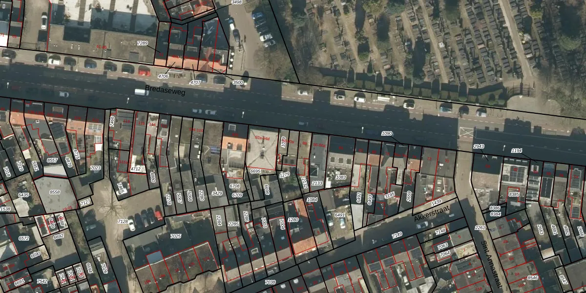 Bredaseweg 90-a is gelegen op kadastraal perceel TBG01P1279. Deze kadastrale aanduiding is uniek en wordt gebruikt door het Kadaster om eigendomsrechten en andere zakelijke rechten vast te leggen. Het perceel maakt onderdeel uit van de kadastrale gemeente Tilburg.