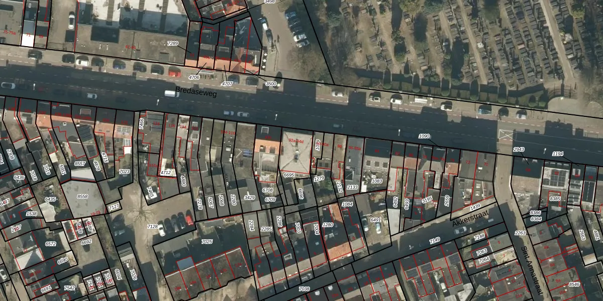 Bredaseweg 92-c is gelegen op kadastraal perceel TBG01P6695. Deze kadastrale aanduiding is uniek en wordt gebruikt door het Kadaster om eigendomsrechten en andere zakelijke rechten vast te leggen. Het perceel maakt onderdeel uit van de kadastrale gemeente Tilburg.