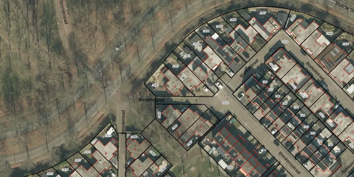 Breskensstraat 38 is gelegen op kadastraal perceel TBG01AF1490. Deze kadastrale aanduiding is uniek en wordt gebruikt door het Kadaster om eigendomsrechten en andere zakelijke rechten vast te leggen. Het perceel maakt onderdeel uit van de kadastrale gemeente Tilburg.