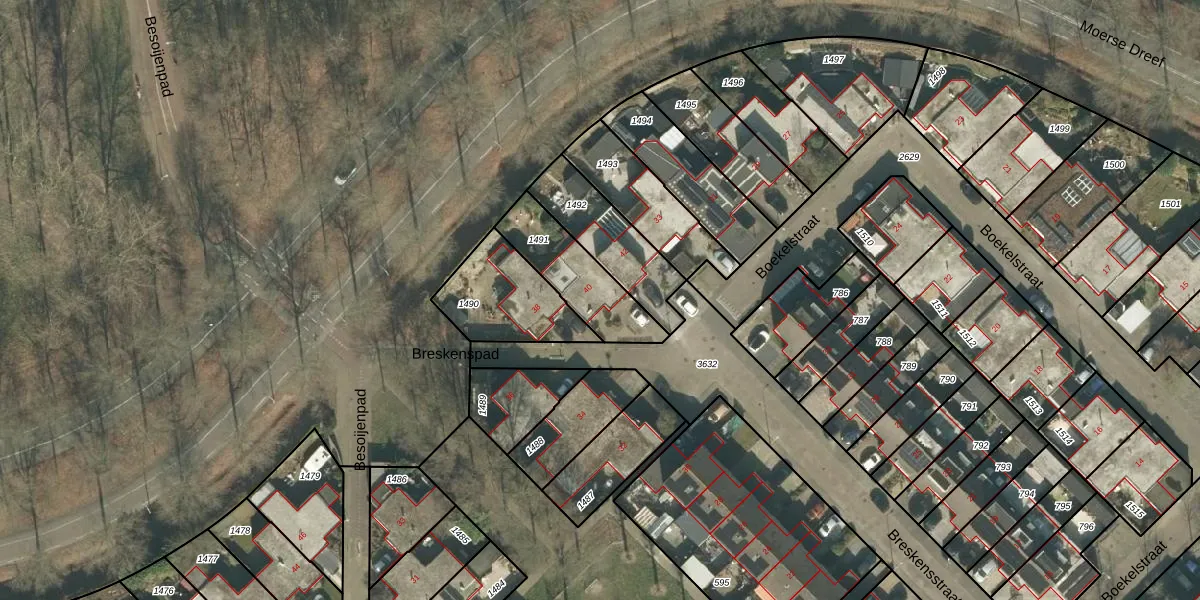 Breskensstraat 40 is gelegen op kadastraal perceel TBG01AF1491. Deze kadastrale aanduiding is uniek en wordt gebruikt door het Kadaster om eigendomsrechten en andere zakelijke rechten vast te leggen. Het perceel maakt onderdeel uit van de kadastrale gemeente Tilburg.