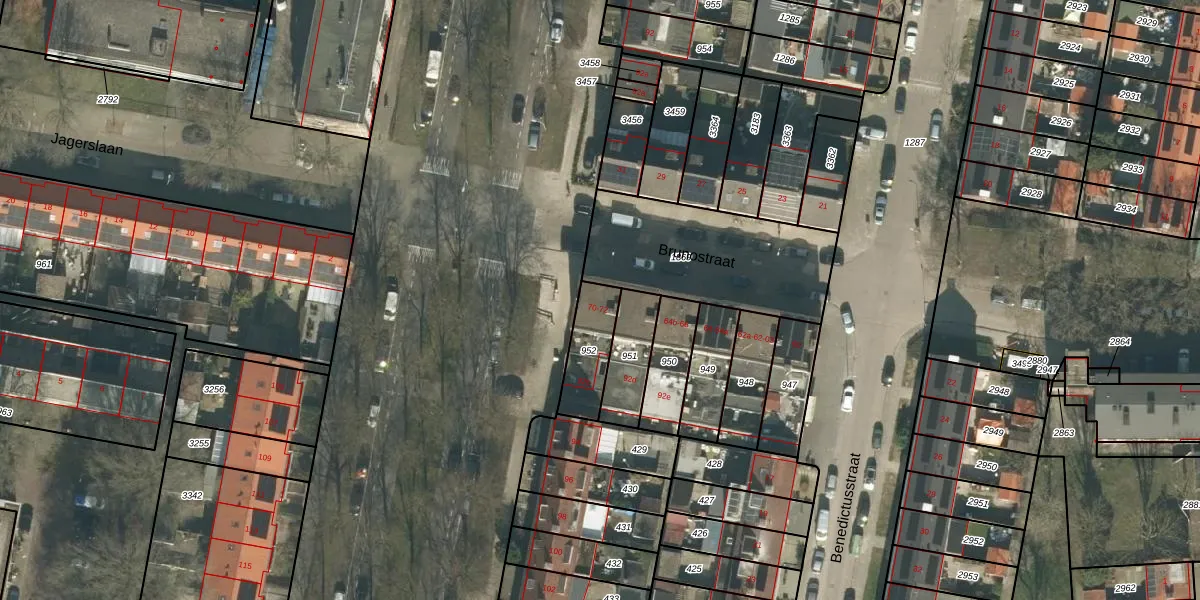 Het perceel waarop Brunostraat 70 staat heeft een oppervlakte van 158 m². Dit is een middelgroot perceel. De perceeloppervlakte wordt geregistreerd door het Kadaster. Gedetailleerde informatie over de maten van dit perceel kunt u vinden in het rapport Kadastrale kaart met maatvoering van Brunostraat 70.