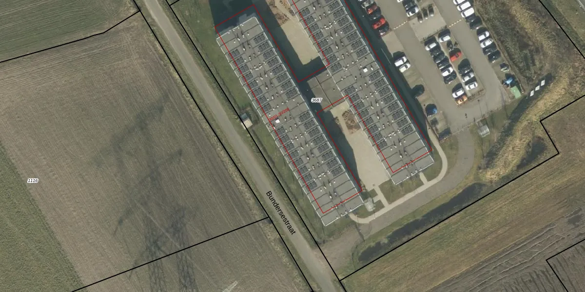Het perceel waarop Bundersestraat 30-31 staat heeft een oppervlakte van 1,1 ha. Dit is een zeer groot perceel. De perceeloppervlakte wordt geregistreerd door het Kadaster. Gedetailleerde informatie over de maten van dit perceel kunt u vinden in het rapport Kadastrale kaart met maatvoering van Bundersestraat 30-31.
