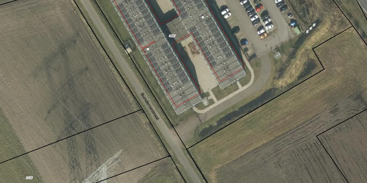 Het perceel waarop Bundersestraat 30-59 staat heeft een oppervlakte van 1,1 ha. Dit is een zeer groot perceel. De perceeloppervlakte wordt geregistreerd door het Kadaster. Gedetailleerde informatie over de maten van dit perceel kunt u vinden in het rapport Kadastrale kaart met maatvoering van Bundersestraat 30-59.