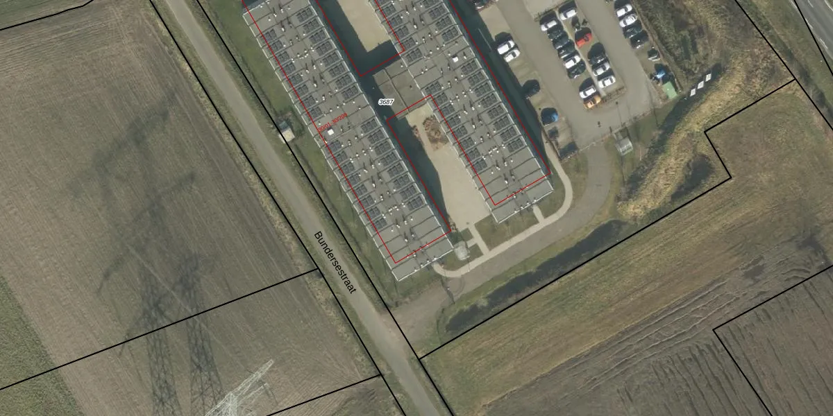Het perceel waarop Bundersestraat 30-94 staat heeft een oppervlakte van 1,1 ha. Dit is een zeer groot perceel. De perceeloppervlakte wordt geregistreerd door het Kadaster. Gedetailleerde informatie over de maten van dit perceel kunt u vinden in het rapport Kadastrale kaart met maatvoering van Bundersestraat 30-94.