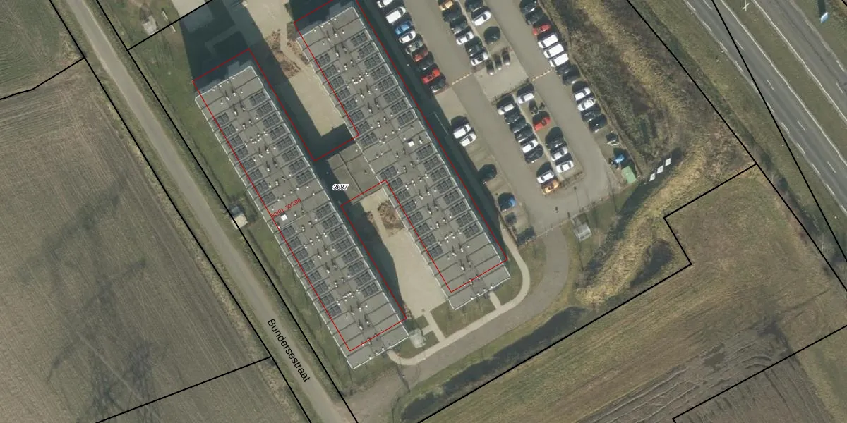 Het perceel waarop Bundersestraat 30-123 staat heeft een oppervlakte van 1,1 ha. Dit is een zeer groot perceel. De perceeloppervlakte wordt geregistreerd door het Kadaster. Gedetailleerde informatie over de maten van dit perceel kunt u vinden in het rapport Kadastrale kaart met maatvoering van Bundersestraat 30-123.