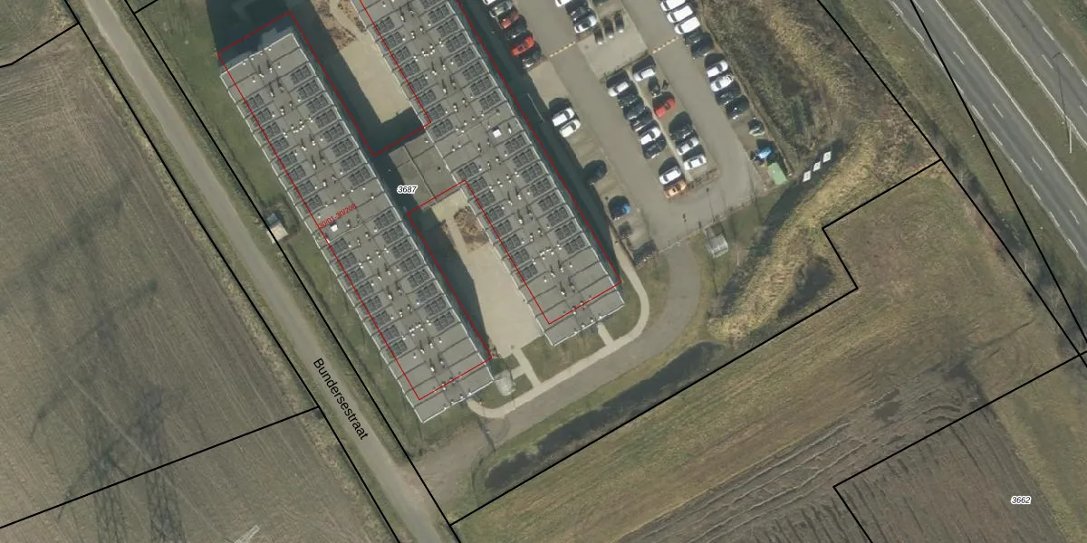 Het perceel waarop Bundersestraat 30-126 staat heeft een oppervlakte van 1,1 ha. Dit is een zeer groot perceel. De perceeloppervlakte wordt geregistreerd door het Kadaster. Gedetailleerde informatie over de maten van dit perceel kunt u vinden in het rapport Kadastrale kaart met maatvoering van Bundersestraat 30-126.