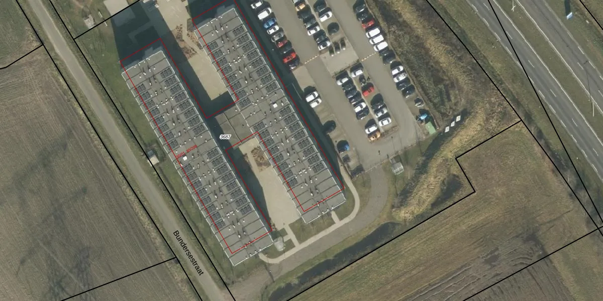 Het perceel waarop Bundersestraat 30-205 staat heeft een oppervlakte van 1,1 ha. Dit is een zeer groot perceel. De perceeloppervlakte wordt geregistreerd door het Kadaster. Gedetailleerde informatie over de maten van dit perceel kunt u vinden in het rapport Kadastrale kaart met maatvoering van Bundersestraat 30-205.