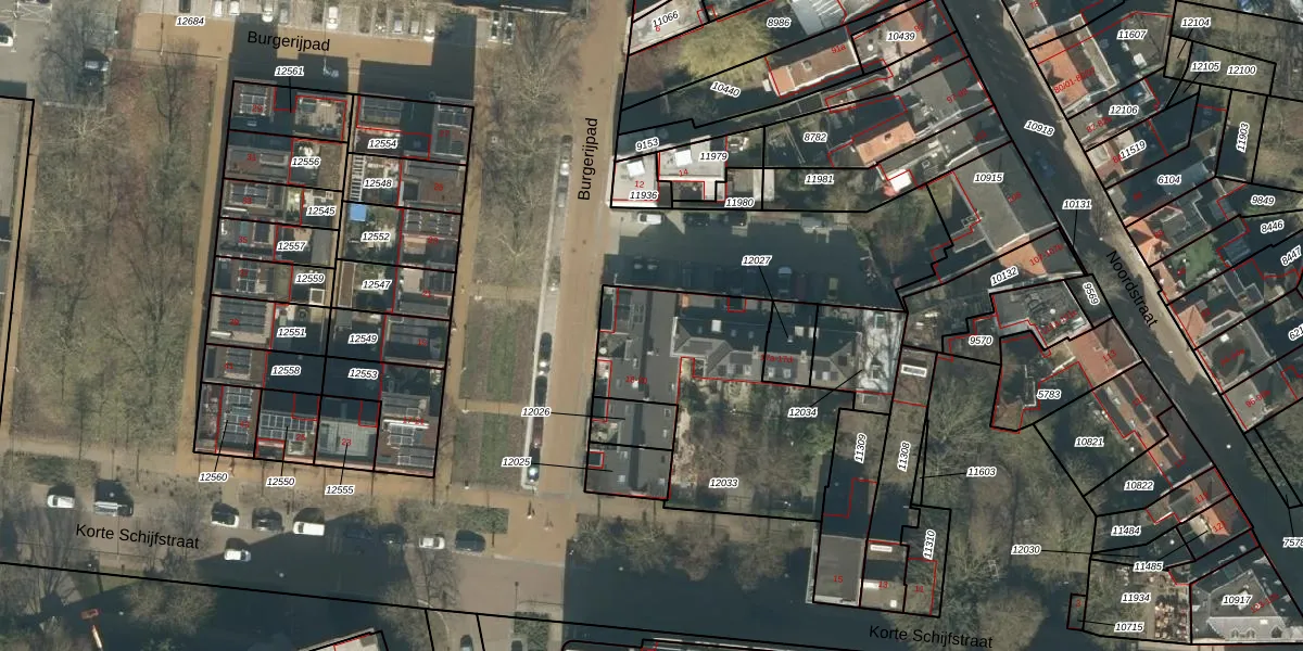 Burgerijpad 18-a is gelegen op kadastraal perceel TBG01M12033. Deze kadastrale aanduiding is uniek en wordt gebruikt door het Kadaster om eigendomsrechten en andere zakelijke rechten vast te leggen. Het perceel maakt onderdeel uit van de kadastrale gemeente Tilburg.