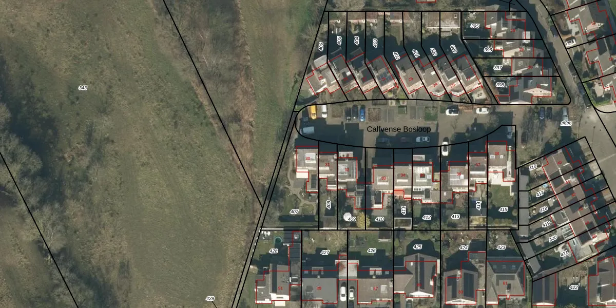 Het perceel waarop Calfvense Bosloop 30 staat heeft een oppervlakte van 432 m². Dit is een groot perceel. De perceeloppervlakte wordt geregistreerd door het Kadaster. Gedetailleerde informatie over de maten van dit perceel kunt u vinden in het rapport Kadastrale kaart met maatvoering van Calfvense Bosloop 30.