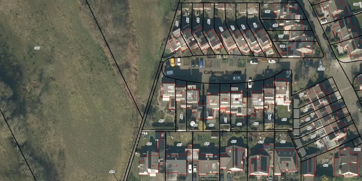 Calfvense Bosloop 31 is gelegen op kadastraal perceel TBG01AA408. Deze kadastrale aanduiding is uniek en wordt gebruikt door het Kadaster om eigendomsrechten en andere zakelijke rechten vast te leggen. Het perceel maakt onderdeel uit van de kadastrale gemeente Tilburg.