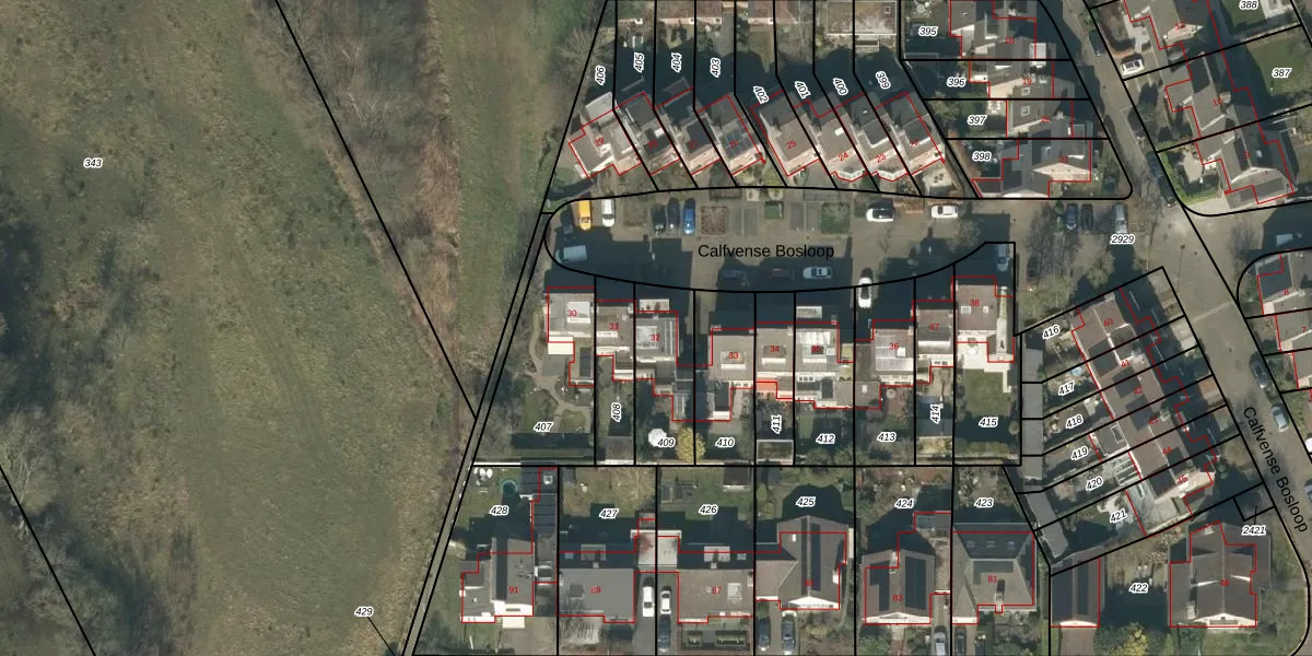Calfvense Bosloop 32 is gelegen op kadastraal perceel TBG01AA409. Deze kadastrale aanduiding is uniek en wordt gebruikt door het Kadaster om eigendomsrechten en andere zakelijke rechten vast te leggen. Het perceel maakt onderdeel uit van de kadastrale gemeente Tilburg.