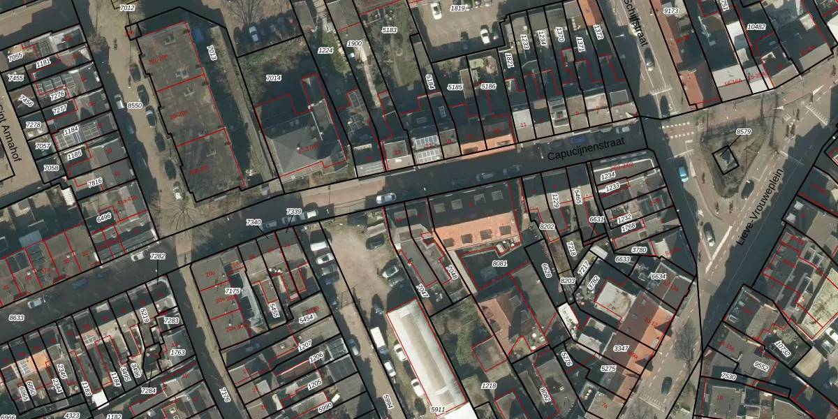 Het perceel waarop Capucijnenstraat 14 staat heeft een oppervlakte van 141 m². Dit is een middelgroot perceel. De perceeloppervlakte wordt geregistreerd door het Kadaster. Gedetailleerde informatie over de maten van dit perceel kunt u vinden in het rapport Kadastrale kaart met maatvoering van Capucijnenstraat 14.