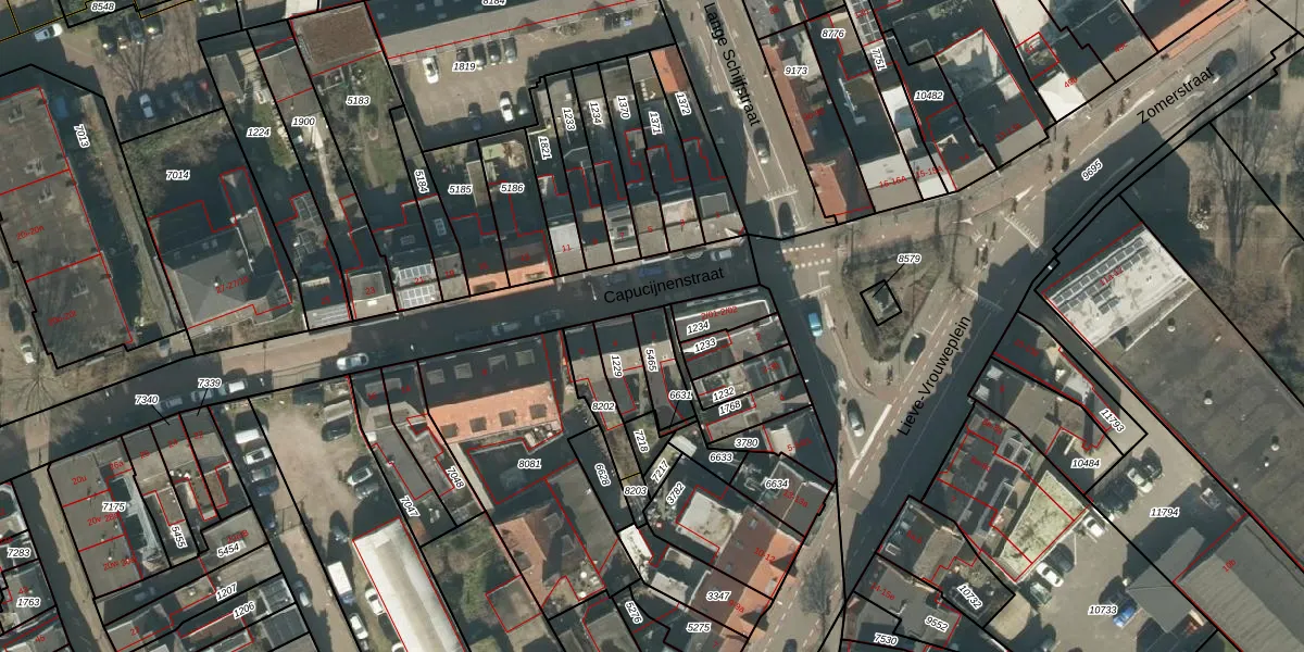 Het perceel waarop Capucijnenstraat 2 staat heeft een oppervlakte van 99 m². Dit is een klein perceel. De perceeloppervlakte wordt geregistreerd door het Kadaster. Gedetailleerde informatie over de maten van dit perceel kunt u vinden in het rapport Kadastrale kaart met maatvoering van Capucijnenstraat 2.