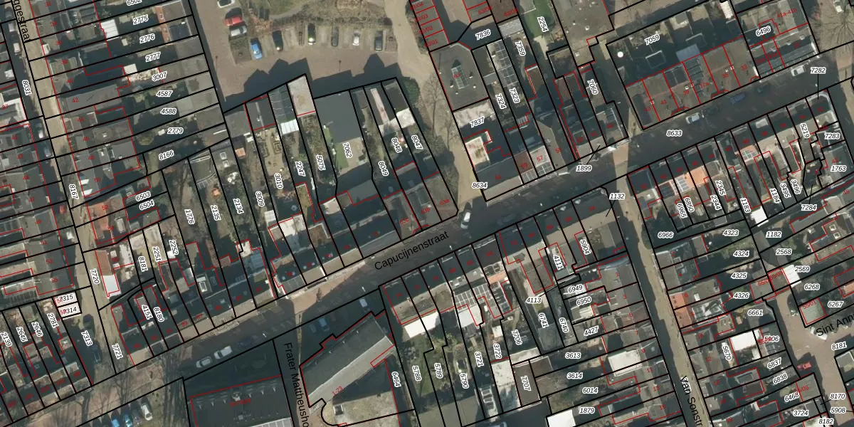 Het perceel waarop Capucijnenstraat 63-b staat heeft een oppervlakte van 177 m². Dit is een middelgroot perceel. De perceeloppervlakte wordt geregistreerd door het Kadaster. Gedetailleerde informatie over de maten van dit perceel kunt u vinden in het rapport Kadastrale kaart met maatvoering van Capucijnenstraat 63-b.