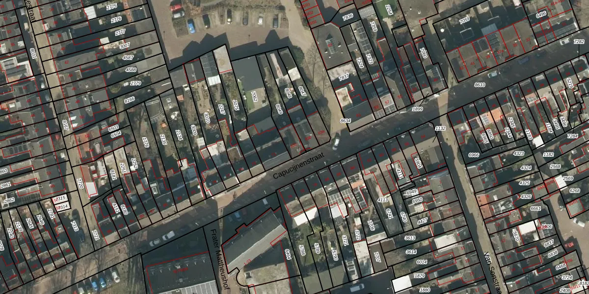 Het perceel waarop Capucijnenstraat 63-c staat heeft een oppervlakte van 171 m². Dit is een middelgroot perceel. De perceeloppervlakte wordt geregistreerd door het Kadaster. Gedetailleerde informatie over de maten van dit perceel kunt u vinden in het rapport Kadastrale kaart met maatvoering van Capucijnenstraat 63-c.