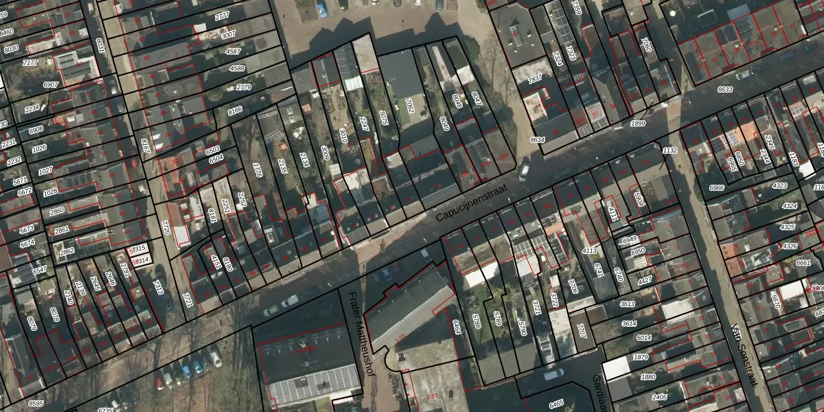 Het perceel waarop Capucijnenstraat 73 staat heeft een oppervlakte van 215 m². Dit is een middelgroot perceel. De perceeloppervlakte wordt geregistreerd door het Kadaster. Gedetailleerde informatie over de maten van dit perceel kunt u vinden in het rapport Kadastrale kaart met maatvoering van Capucijnenstraat 73.