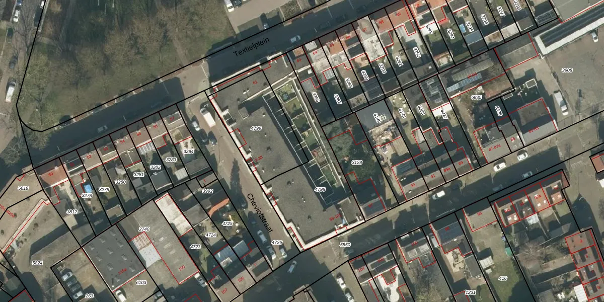 Het adres is gelegen op perceel 4799 in de sectie O en de kadastrale gemeente Tilburg. De kadastrale aanduiding is aldus TBG01-O-4799. Het perceel is 636 m² groot. Dat is kleiner dan de gemiddelde perceeloppervlakte in Tilburg, dat op 1265,32 m² ligt. De grootste perceeloppervlakte in de kadastrale gemeente is 87,4 ha. De kleinste oppervlakte bedraagt 0 m². Er zijn 11 adressen aanwezig op het perceel. De huidige grenzen van het perceel zijn digitaal in de Basisregistratie Kadaster (BRK) geregistreerd op 13-03-2006.