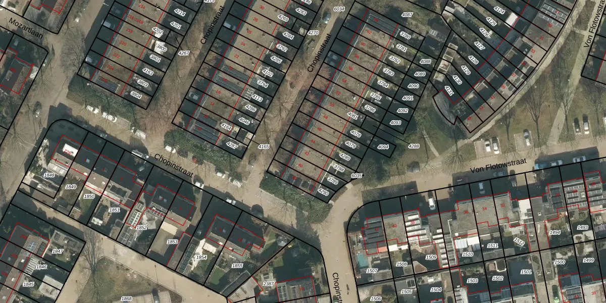 Het perceel waarop Chopinstraat 42 staat heeft een oppervlakte van 117 m². Dit is een middelgroot perceel. De perceeloppervlakte wordt geregistreerd door het Kadaster. Gedetailleerde informatie over de maten van dit perceel kunt u vinden in het rapport Kadastrale kaart met maatvoering van Chopinstraat 42.